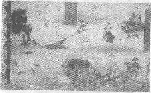 | 释义 | 弥勒经变图(农耕)壁画 弥勒经变图(农耕)壁画中唐(吐蕃时代)。纵48厘米,横63厘米。甘肃省安西县榆林窟第25窟北壁壁画。此图虽表现的是《佛说弥勒下生经》所载“雨泽随时,谷稼滋茂……,一种七收”的内容,实际是那个时代寺院收获的写照。图中端坐于地毯的为主人,身前置长几一张,两位戴幞头,着长衫的管事跪在主人面前报告着。图左侧一农夫和农妇正在扬场。图下部分别有农夫、农妇收割庄稼,耕地和播种。此图是研究当时农业生产极好的形象资料。其中有些农具,如六股杈至今仍在当地农村使用。