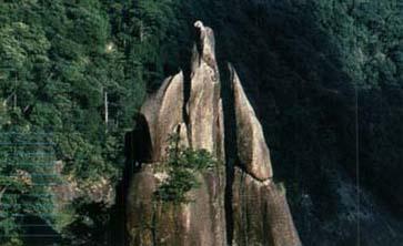 情侣树 在景区东南部的山林之中,两树相距50厘米左右,一松一荷,臂膊相绕,犹如一对情人在热烈拥吻。