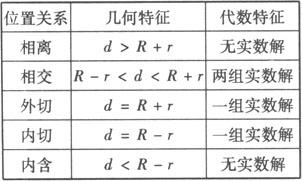 设两圆的半径分别为R、r,R≥r,圆心距为d,则两圆的位置关系可用下表表示: