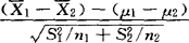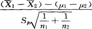 区间估计置信区间的一种。 分两种情况:(1)设有两个总体X1~N(μ1, ),X2~N(μ2, ),且X1与X2相互独立,其中σ1,σ2已知,μ1与μ2均未知。从X1中随机抽取样本:X11,X12,…,X1n,从X2中随机抽取样本:X21,X22,…,X2n。。 为构造(μ1-μ2)的置信区间,需使用统计量Z= 。在上面条件下,Z~N(0,1)。由预先指定的置信度(1-α),查正态分布表可得双侧α分位点Zα/2,满足P(-Zα/2≤Z≤Zα/2)=1-α。 变形后可得(μ1-μ2)的置信度为1-α的估计区间为( - )±Zα/2· 。在大样本情况,可不要求总体服从正态分布,上面估计区间仍近似可用。(2)设有两个总体X1~N(μ1, ),X2~N(μ2, ),且X1与X2相互独立,其中 与 未知但相等。为估计(μ1-μ2),要使用统计量t= ,其中Sp= ( 与 都是总体方差的无偏估计),在上面条件下,t服从自由度为n1+n2-2的t分布。对给定的置信度(1-α),查t分布数值表得到双侧α分位点tα/2,它满足P{-tα/2≤t≤tα/2}=1-α。变形后可得(μ1-μ2)的置信度为1-α的估计区间是 - ±tα/2Sp 。 在没有足够理由认为σ1=σ2时,可采用统计量t*= ,它渐近地服从t分布,自由度v= -2,此时(μ1-μ2)的估计区间为( - )±tα/2· 。当n>30时,可用标准正态分布的双侧α分位点Zα/2代替上面的tα/2。 |