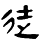 *徒tú10画 彳部 (1) 步行;不借助交通工具行走: ~步|~涉。 (2) 空的,没有凭借的: ~手。 (3) 只;仅仅: ~有虚名|~托空言|家~四壁。 (4) 白白地: ~然|~劳|~自惊扰。 (5) 徒弟;学生: ~工|门~|师~|高~|学~|尊师爱~。 (6) 信仰某种宗教的人: 信~|佛教~|基督~。 (7) 同一派系的人(含贬义): 党~。 (8) (某一类)人(含贬义): 酒~|匪~|歹~|不法之~。 (9) 徒刑,剥夺犯人自由的刑罚。 徒 ☚ 巡 隨 ☛ 徒tú西周金文以来的会意兼形声字。从彳、止,即走之旁(辵chuò,走路),从土(路上有土),土亦声。本是步行义。组词如:徒步(不用车马)。不用什么凭借事物,引申为空。如:徒手|徒然|徒劳往返。又引申为只,仅仅。如:徒托空言|不徒无益,反而有害。转为名词,古代指跟从的人(如仆役或卫兵等)。又引申指同一类或同一派别的人。又引申指信仰同一宗教的人。如:教徒。也指人,多指坏人。如:匪徒|不法之徒。又引申指徒弟。如:学徒|门徒。近代现代有徒刑。即剥夺犯人自由的刑罚。分有期徒刑和无期徒刑两种。 徒★常◎常