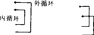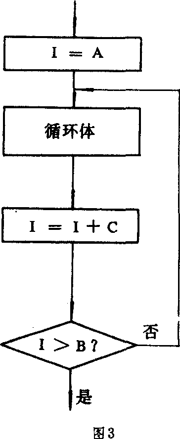 图3 FOR语句是循环的第一个语句行,是循环的头,设定循环控制变量(本例中的I),它必须是一个简单变量,并给定控制变量的初值、终值与步长(本例中的A,B,C),初值、终值、步长可以是三个表达式(当然也可是变量或直接量),由此可以定出循环次数.NEXT是循环的尾,遇到NEXT语句行时,对循环控制变量进行更新(加步长值);FOR与NEXT之间是要重复执行的语句序列,称作循环体.步长是循环一次后,控制变量值的增量.若步长为1,可以省略.即初始语句中缺步长项时,计算机将认定步长为1.步长可以是一个实数,当步长为负时,图3中控制条件的大于关系将改为小于.步长为-1时是不可省略的. 步长为正数,若控制变量终值小于初值(或步长为负,终值大于初值),一般问题中不应执行循环体,而应直接退出循环,但按图3的模式是至少执行一次(APPLE SOFT BASIC即是这种模式),因此在较复杂的问题中,若初值、终值与步长是表达式,应在进入循环语句前加以适当的判断语句,避免出错. 初值、终值与步长都可以是表达式.计算机将首先算出这些表达式的值,然后再进入循环,在BASIC语言中循环控制变量的初值、终值与步长都是实数,因此控制变量不一定能恰好取得终值. 循环控制变量在循环语句中,主要是用来控制循环次数的.例如: 10 FOR I=1 TO 4 20 PRINT“*”; 30 NEXT I:END 若更换适当的初值、终值与步长,效果可能是一样的.第10句改为: 10 FOR I=2.5 TO 4 STEP 0.5 效果是一样的.有时循环控制变量可能参与循环体中的运算处理,例如: 10 FOR X=0 TO 3.14159 STEP 3.14159/20 20 PRINT“SIN (”; X;“) =”;SIN (X) 30 NEXTX:END 这样的程序中的初值、终值与步长,必须按循环体中的需要来设定. 循环变量参加循环体中的运算,就可能在运算中改变值.例如,在下面的小程序中,循环变量改变值就改变了初始语句原订的循环次数. 10 FOR X=1 TO 100 20 PRINT EXP (X) 30 IF X>2.5 THEN X=100 40 NEXT X 50 END 第30句使该程序只循环三次. 循环语句中常常出现累加、累乘、计数的处理.其中若干变量应在进入循环语句前赋初值. 循环语句与数组配合,在排序、检索等数据处理方面,用途很多. ☚ 无条件转移语句 暂停语句 ☛ 循环语句 循环语句Xunhuan yuju计算机最重要的优点之一在于能够按照人的意志自动地重复某些计算步骤,实现这一点的办法一是程序循环,二是子程序和函数调用。