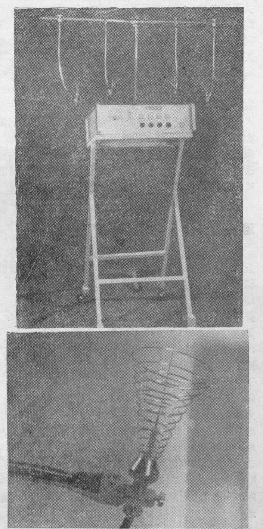 微波针灸,是在毫针针刺的基础上,把微波电线接到针柄上,将针刺和微波的热效应结合起来借以治病的方法。微波针灸仪是近十年来研制成功的。DBJ—1型微波针灸仪就是其中的一个。(图1)该仪器内部工作电压为36V,治疗范围内最大的功率密度为每300mW/cm2,安全可靠,无副作用。其工作原理如图2所示。