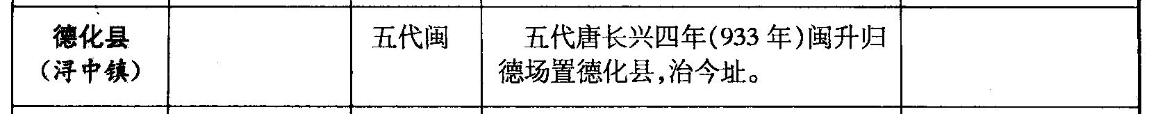 德化县(浔中镇)五代闽五代唐长兴四年(933年)闽升归德场置德化县,治今址。
