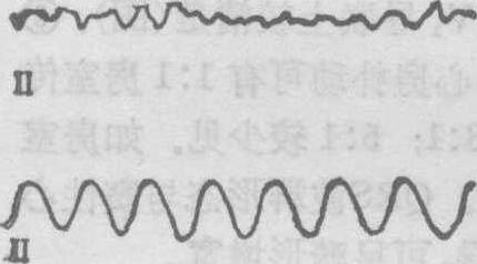 上行: 通常的QRS-T波均消失,代之以振幅和形态均不规则的基线摆动,为心室颤动。 下行: 规律而连续的振幅大的正弦型波形,为心室扑动。 治疗参见“心搏骤停和心肺复苏”条。 ☚ 心房扑动 游走心律 ☛ |