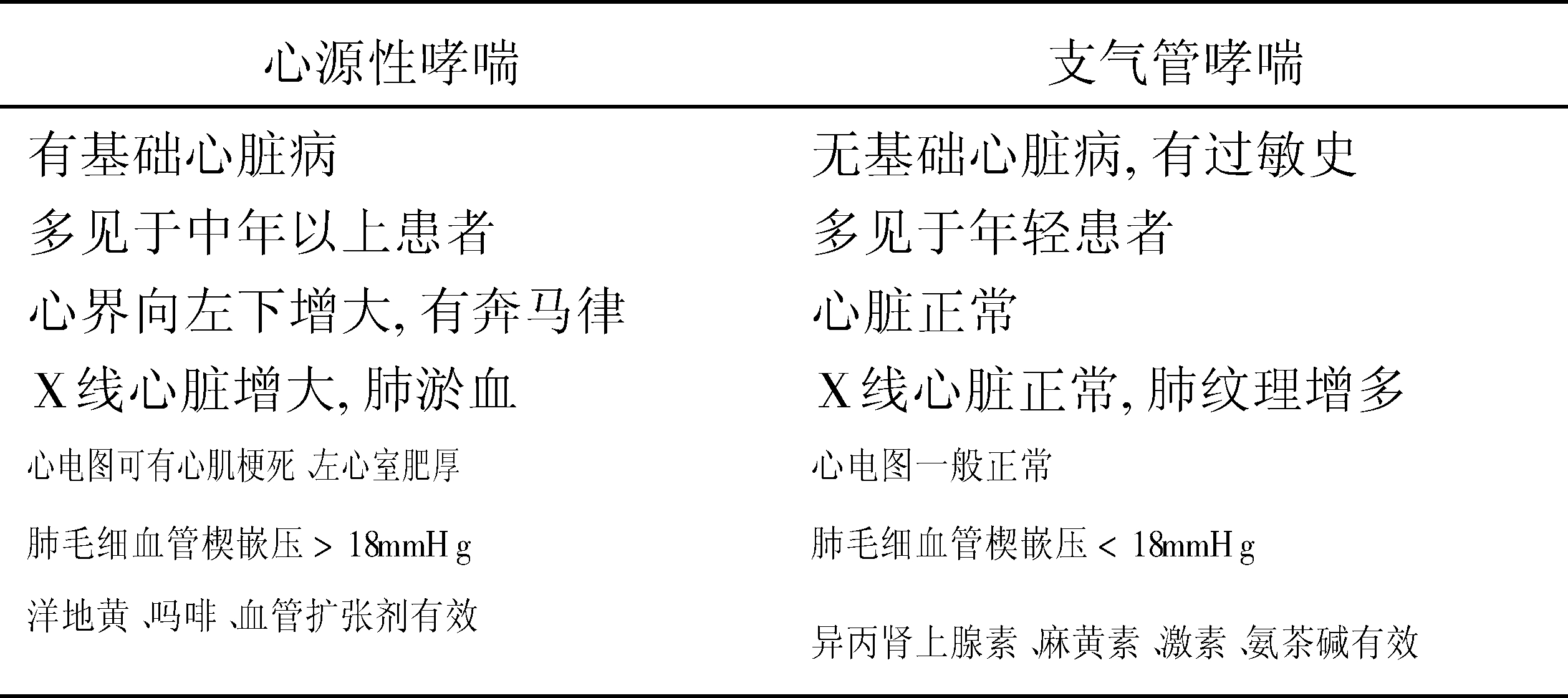 | 释义 | 心源性哮喘cardiac asthma系指因心脏疾病而引起的哮喘而言。临床上多见于高血压、二尖瓣狭窄、冠状动脉硬化等引起的急性左心衰竭。发病机制是急性肺瘀血、肺水肿,引起急性通气、换气障碍。患者多于夜间突然发病,阵发性气急、胸闷、呼吸困难、不能平卧、哮喘;咯血性泡沫痰、脉搏细弱频数、心界向左侧扩大、心律不齐、两肺底满布湿性啰音。本病需与肺性支气管哮喘相鉴别。治疗,可用吗啡及改善心脏功能的药物。 心源性哮喘 心源性哮喘cardiac asthma指急性左心衰竭发生急性肺水肿时造成的严重呼吸困难。患者表现为端坐呼吸、高度气喘、面色青紫、大汗,呼吸有哮鸣声,咳浆液性粉红色泡沫样痰,双肺可满布水泡音和哮鸣音。除原有心脏病体征外,可有心率增快,奔马律。其产生机制:肺淤血使通气功能下降,心排血量减少使换气功能降低,导致缺氧和二氧化碳潴留。常见于各种原因所致的左心衰竭。心源性哮喘与支气管哮喘颇相似,但处理不同,所以必须加以鉴别(见下表)。 心源性哮喘与支气管哮喘的鉴别 ☚ 夜间阵发性呼吸困难 心源性咯血 ☛ |