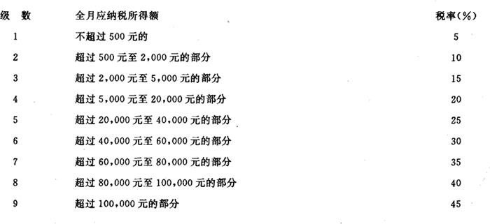则上例中,因张某全月应纳税所得额1,500元张某本月应纳个人所得税=1,500×10%-25=125(元)下列人员在计算工资、薪金所得的应纳税所得时,在每月减除800元费用的基础上,再减除3,200元的附加减除费用标准。(华侨和香港、澳门、台湾同胞参照执行): ❶ 在中国境内的外商投资企业和外国企业中工作的外籍人员; ❷ 应聘在中国境内的企业、事业单位、社会团体、国家机关中工作的外籍专家; ❸ 在中国境内有住所而在中国境外任职或者受雇取得工资、薪金所得的个人; ❹ 财政部确定的其他人员。 (2)个体工商户的生产,经营所得和对企事业单位的承包经营、承租经营所得 个体工商户的生产,经营所得和对企业事业单位的承包经营、承租经营所得,共同适用一套五级超额累进税率,税率从5%至35%。 个人所得税税率表二 (个体工商户的生产、经营所得和对企事业单位的承包经营、承租经营所得适用)