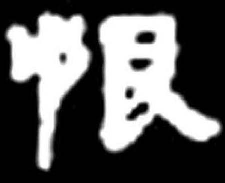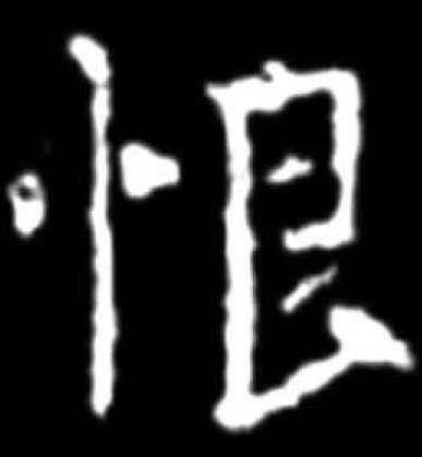 【提示】艮,上面不带点,不要错写成良; 中间的横宋体与左右两边相接,楷体与左边相接,与右边相离。 *恨hèn9画 心部 (1) 遗憾;后悔: 悔~|遗~终生|引为~事|相见~晚。 (2) 怨恨;仇视: 痛~|雪~|~透了|~之入骨。 恨 ☚ � 悔 ☛ 恨hèn古代形声字。从忄(心),艮声。声变如艮很狠、干汗例。怨,仇视。如:恨入骨髓。组词如:怨恨。引申为懊悔,令人懊悔或怨恨的事。如:遗恨。 恨★常◎常