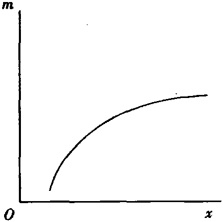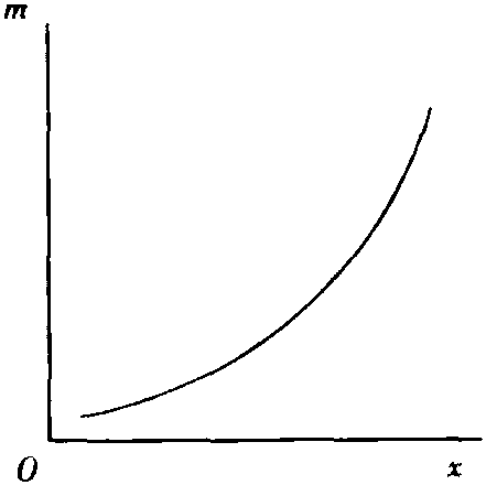图5 图4和图5中的恩格尔曲线都是向右上方倾斜的,其需求收入弹性为正值,这表明是正常商品的恩格尔曲线。而且,图4、图5中的曲线,分别是必需商品和奢侈商品的恩格尔曲线,前者是凸的,后者是凹的。这两条曲线是表示必需商品和奢侈商品的需求量随着消费者收入的变化而变化的图式。一般地,恩格尔曲线的函数形式是: