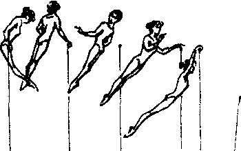 ☚ 高杠面向外悬垂后摆分腿换握低杠成手倒立   高杠支撑后摆转体360°成高杠悬垂 ☛
