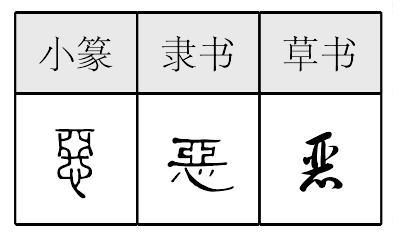 惡,形声,从心,亞声,本义读è,罪过,引申为极坏的、不好、凶残等;又读wù,引申为不喜欢、憎恨;又读wū,假借为代词(表示疑问,相当于“哪里”“怎么”)、叹词(表示惊讶)等;又读ě,用于“惡心”,义为有想呕吐的感觉,引申为令人厌恶。噁,形声,从口,惡声,用于“噁心”,与“惡心”同。《简化字表》把“惡”类推简作“恶”;把“噁”简作“恶”,用同音字代替。“噁”又读è,用于译音,如化学名词“二 英”“二 烷”等,类推简作“ ”。 【辨析】 ❶“惡”与“噁”不是等义繁体字。 ❷恶/丑(醜) 见52页“丑”。 ❸恶/噩 见94页“噩”。 ❹恶/乌/安/焉 见480页“焉”。 【构词】 恶化(惡化)∣恶魔(惡魔)∣凶恶(兇惡)∣恶心(惡心∕噁心)恶义同〖恶识〗。得罪;冒犯。 《金》三: 小人只认的大郎,是个养家经纪人,且是街上做买卖,大大小小不曾~了一个,又会撰钱,又且好性格。 恶,另见ě(“恶泛泛”等)。 |