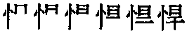 悍 金文; 篆hàn[旱(聲符)+忄(心,意符)→悍(《説文》:“悍,勇也。從心,旱聲。”悍:勇猛〈強悍〉;兇暴〈兇悍〉;強勁〈急悍〉。)] [西漢] 賈誼《治安策》:“陛下之臣雖有悍如馮敬者,適啟其口,匕首已陷其胸矣。” 悍*猂hàn(10画)