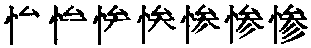 cǎn慘,形声,从心,參声,本义为狠毒,引申为悲痛、程度严重等。《简化字表》类推简作“惨”。 |