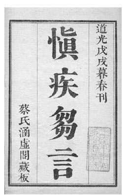 慎疾刍言又名《医砭》。医论。清徐大椿撰。一卷。大椿有《医学源流论》已著录。为指出医界流弊,以期医家谨慎治疾而作,成书于乾隆三十二年(1767)。凡分补剂、用药、中风、咳嗽、吐血、中暑、痢疾、阴证、老人、妇女、小儿、外科、治法、制剂、煎药服药法、延医、秘方、诡诞、宗传诸篇,对误用补剂、内科杂病误治、不同患者如老人、妇女、小儿治疗上的区别、外科病证治法等简要论述,倡导因病施治。议论中肯,颇多临证体验。有《徐氏医书》诸种本,道光十八年(1838)蔡氏涵虚阁刻本,《中国医学大成》本等二十余种本。 慎疾刍言医论著作。1卷。清·徐大椿撰于1767年。本书着重剖析医界流弊,以期医家谨慎治疾。内容有误用补剂、内科杂病误治的论述,不同患者如老人、妇女、小儿治疗上的区别,外科病证治法等。倡导因病施治,简明切要。此书又有王士雄校刊本,经张鸿补辑,改名《医砭》,编入《潜斋医学丛书》 中。 慎疾刍言shènjíchúyán医论著作。1 卷。清·徐大椿撰于1767 年。该书着重剖析医界流弊, 以期医家谨慎治病。内容有误用补剂、内科杂病误治的论述, 老、妇、幼治疗上的区别及外科病症治法等。倡导因病施治, 简明切要。此书又有王士雄校刊本, 经张鸿补辑, 改名《医砭》, 编入《潜斋医学丛书》中。
