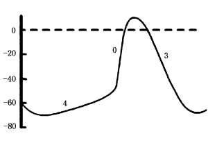 | 释义 | 慢反应动作电位 慢反应动作电位slow response action potential系慢反应心肌细胞的动作电位。其特点是0期去极化主要由慢钙内流所形成,除极速度缓慢(1~10v/s),动作电位的上升支(0相)平缓,平台不明显,且静息电位(或最大舒张电位)数值较小,小于-70mV,动作电位幅度较小,传导速度缓慢(见下图)。