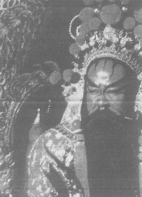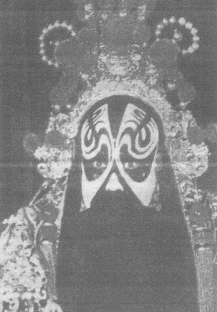 戏曲舞台上年纪较大的男性人物都是挂着胡子的,这胡子不是粘在演员脸上,而是用钢丝作挂钩,下悬各式胡子形状,挂在耳上。这胡子就叫髯口。