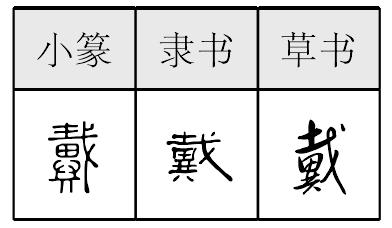 戴Dài现行较罕见姓氏。今北京,河北之尚义、乐亭,山东之平邑、龙口,山西之太原,湖北之监利,广西之田林,云南之泸水、陇川,四川之合江、南江等地均有分布。汉、满、蒙、藏、布依等多个民族有此姓。《郑通志》、《清通志》 之 《氏族略》 亦俱收载。其源不一: ❶郑樵注云: “(周不得姓之国),开封封邱县戴城是其国。隐公十年,郑人伐取之。或云: 旧考城县是,为宋人所灭,改名谷城,子孙以国为氏。” ❷又云: “宋戴公之后亦为戴氏,是以谥为氏者。” 此当系出子姓。 ❸ 《姓氏考略》 注引 《鼠璞》 云: “殷氏有改为戴者,以义改也。” ❹或为满族姓戴佳氏所改。 汉代有戴德,信都王太傅; 东晋有戴逵; 唐代有戴嵩; 宋代有戴复古;清代有戴震、戴望。 戴dài❶加在頭上,或用頭頂著。張衡《西京賦》:“戴翠帽,倚金較。” ❷冠。黄香《九宮賦》:“戴㠍岌而帶繚繞,曳陶匏以委蛇。” ❸覆蓋。班固《西都賦》:“上反宇以蓋戴,激日景而納光。” ❹尊奉,擁護。張衡《東京賦》:“百姓弗能忍,是用息肩於大漢,而欣戴高祖。” ❺通“載”。張衡《東京賦》:“戎士介而揚揮,戴金鉦而建黄鉞。” 戴读音d·ai(ˋ),为ai韵目,属ai—uai韵部。待戴切,去,代韵。 ❶头上戴着;戴帽子等的“戴”。 ❷拥护;爱戴;拥戴;尊奉。 上一条: 蝳 下一条: 襶 戴逮dǎi❶分物得增益。例:另多加~一份。 ❍ 多给撂~一点。 ❷竖立。例:硬耨~斡儿不动弹。 ❍ 晚上耨在暗处,立得端~~地怕人。 ❸引申烧、羞涩。例:帽子戴上,把人烧不来~的热。 ❍ 这事把人羞得颏(hāi)不来~的,丢人显眼的。 《说文》:“戴,分物得增益曰戴。”唐段成式《酉阳杂俎·黥》:“从者惊党,毛戴。”《辽史·礼志·嘉仪下》:“国语谓之‘戴辣’。戴,烧也。辣,甲(铠甲)也。” 戴〔dai〕 1.ndut; ~斗笠。.ndut gud. 2.zhaot; ~手镯。zhaot khangt baos. 戴孝 〔dai xiao〕 ndut xaob;danbxaob. 戴{}五7319①动喜爱。中原官话。山东梁山〖tε313〗。~吃‖~听‖~见。②动假惺惺地推崇人。吴语。浙江宁波。应钟《甬言稽诂・释言》:「(甬)俗以诡辞推崇人呼为~。」③介顺着。闽语。福建建阳〖tai32〗。   戴dài❶把东西加在头、面或身体其他部位 △ ~帽子|~眼镜|披星~月。 ❷比喻顶着、背负 △ ~罪立功。 ❸尊敬;推崇 △ 爱~|拥~。 ❹姓。 ★戴高帽子 ★穿戴 佩戴 张冠李戴 戴❶把东西加在头、脸、颈、胸、臂、手等处:~孝︱穿~︱插~︱~盆望天︱披星~月︱不共~天︱张冠李~。 ❷拥护;尊敬:拥~︱推~︱感~丨爱~︱翊(yi)~︱感恩~德。 戴dài❶ 把装饰性或保护性的东西放在头、眼、耳、鼻、手、臂、胸等部位:戴帽子│戴眼镜│戴护肘│戴红领巾。 ❷ 拥护、尊敬:爱戴│拥戴│推戴│感戴。 ❸ 比喻顶着,承受:披星戴月│戴罪立功。 ❹ 姓。 戴dài把东西放在头、面、胸、臂、腕、手等处。 【词汇】戴孝︱佩戴 【组词】戴手表︱不共戴天︱披星戴月︱戴罪立功︱戴高帽子︱戴校徽 【例句】坐在当中戴红领巾的男孩,仰着头,正在高声背诵英语单词,旁边放着英语卡片。 ❍ 邓奶奶70多岁了。她戴着老花镜,安详地坐在沙发上,给我们敬爱的周恩来总理补睡衣。 【近义】带︱佩︱挂 【反义】脱︱摘︱取 戴(1次) 通载,负载。鳌~山抃《天》 戴dài通“载”,负载,背负。《天问》:“鳌戴山抃,何以安之?”王逸注:“《列仙传》曰: 有巨灵之鳌,背负蓬莱之山而抃舞,戏沧海之中,独何以安之乎?”洪兴祖补注:“《列子》云:五山之根,无所连箸,帝命禺强使巨鳌十五,举首而戴之,迭为三番,六万岁一交焉,五山始峙而不动。”金开诚校注:“戴,背负。”汤炳正今注:“戴,背负。” 戴dai戴胜1 戴孝 爱戴 插戴 穿戴 感戴 佩戴 推戴 拥戴戴绿帽子 戴高帽子 戴金插银 戴帽大学 戴盆望天2 戴霜履冰戴天覆地 戴圆履方3 戴月披星 戴罪立功 张冠李戴 戴有色眼镜4 戴dai把东西加在头、脸、胸、手臂等处:~帽子|~眼镜|~戒指|胸前~了一朵大红花|战士们~着袖标,在黑夜之中出发了。 戴(同)带 穿 (反)脱 戴dāi把帽子、饰物等安置在人身上某一处:小丫头忙捧过斗笠来,宝玉便把头略低一低,命他~上。(八·188)(宝玉)身上穿着银红撒花半旧大袄,仍旧~着项圈、宝玉、寄名锁、护身符等物。(三·67)