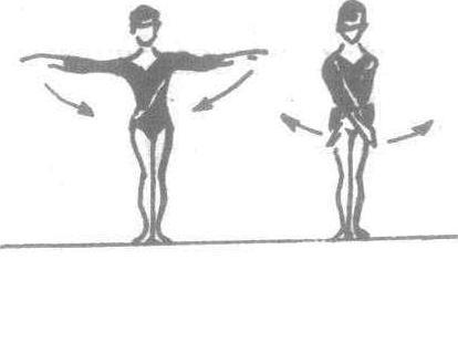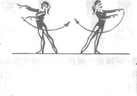 教学重点 先原地做两臂各种摆动动作,基本掌握后可结合两腿弹动及移重心等配合进行练习。