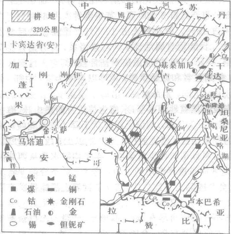 | 释义 | 扎伊尔 扎伊尔Zhayier位于非洲大陆中央,素有“非洲心脏”之称。邻国众多,北有中非、苏丹,西有刚果、安哥拉,东邻乌干达、卢旺达、布隆迪、坦桑尼亚,南与赞比亚接壤。面积234.5万平方公里,人口3 255.9万。全国有大小部族250多个,卢巴人、刚果人、卢旺达人较多,丛林中还有少数身材矮小的俾格米人。语言很复杂,民族语言属尼日尔—刚果语系,官方语言为法语。居民多信罗马天主教、基督教新教和当地基督教。绝大部分国土深居大陆内部,海岸线仅长37公里。地形中部低,四周高。中部为刚果盆地东部,刚果盆地在境内面积约75万平方公里,地势低平,平均高度仅海拔400米;东部为东非大裂谷区,谷内多洼地、湖泊,两侧山脉陡峭,地形崎岖,海拔达1 000—2 000米;北部为阿赞德高原;西部为下几内亚高原;南部为隆达—加丹加高原。河流众多,扎伊尔河(刚果河)及支流几乎流经全境。因受地形影响,在高原、山地和盆地间形成许多瀑布,不利航运,但水力资源丰富。赤道横贯北部,大部分地区处南、北纬5°之间,属热带雨林气候,年平均降水量1 500—2 000毫米;南纬5°以南为热带草原气候,年降水量1 000—1 500毫米。森林覆盖率达53%,多乌木、红木、花梨木等名贵木材,是世界上森林资源最丰富的国家之一,但目前采伐较少。矿产资源种类多,储量大,素有“中非宝石”之称。有铜、锡、金、钴、铌、钽、锰、铝土、铁等矿藏,其中工业用金刚石、钴的储量居世界首位,铌、钽、铜、锡、金、铝土的储量也相当丰富,近些年又发现有丰富的石油和天然气。铜、钴矿主要集中在南部高原,钽、铌、金等矿分布东部地区,金刚石矿分布在刚果河的支流开赛河流域。采矿业是国家重要经济命脉,产值约占国民生产总值的1/5,其中以铜、钴和金刚石的产值较高。年产铜约50万吨以上,居世界第六位;年产钴1万吨以上,占世界总产量1/2左右,居世界第一位}年产金刚石1 000万克拉以上,居世界首位,因多为砂矿,宝石比重低,按产值计居世界第四位。矿产品的出口占国家出口总额的80%。制造业较薄弱,有电力、冶金、化工、纺织、建材等部门,主要集中在首都金沙萨和南部矿区的卢本巴希。农作物种类多,粮食作物有玉米、稻米等,但粮食不能自给}经济作物有咖啡、油棕、橡胶、烟草、花生等,棕榈油产量居世界前列,咖啡、橡胶产量居非洲前列。草原虽广,因萃萃蝇肆虐,大部分草场闲置,只有东北部高地养牛业较重要。首都金沙萨是全国政治、经济,交通和文化中心,有纺织、食品、造船、化工等工业部门,是全国内河航运的终点和最大港口,还是重要国际航空港。