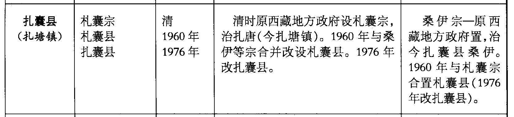 扎囊县(扎塘镇)札囊宗札囊县扎囊县清1960年1976年清时原西藏地方政府设札囊宗,治扎唐(今扎塘镇)。1960年与桑伊等宗合并改设札囊县。1976年改扎囊县。桑伊宗—原西藏地方政府置,治今扎囊县桑伊。1960年与札囊宗合置札囊县(1976年改扎囊县)。