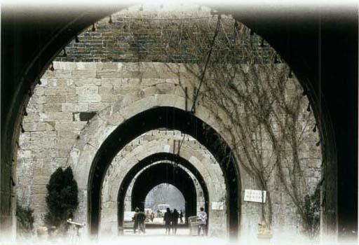 | 释义 | 中华门·中华门瓮城 中华门,位于中华路南端,长干桥以北,明代称聚宝门,因其面对聚宝山(今名雨花台)而得名,是南京城墙现存最大的保存最完好的一座城堡式城门。中华门结构复杂,设计巧妙,为我国最大、最完整、最宏伟壮丽的堡垒式城门,在我国城垣建筑史上占有极其重要的地位,为研究我国古代军事防御、城堡建筑,提供了十分珍贵的实物资料。 宋绍兴初曾修理加固并建瓮城和券门。明洪武初,修建都城时重建此门。平面呈长方形南北长129米,东西宽118.5米,总面积11720平方米。全部以巨大条石为基巨砖为墙,粘合极为牢固。有三道瓮城,头道瓮城两侧设马道,供守军骑马登城。城上原有庑殿式重檐筒瓦顶城楼和其他建筑,今仅存台基遗址。有四道直线贯通拱形城门,高19米。每道城门有双扇木质铁皮门和可上下启动的千斤闸。最南一道城墙建有27个石洞窟,古称藏兵洞,为战士隐蔽休息场所,亦可储存粮食、军械、檑石、滚木等备战物资。每洞可容纳士兵百人以上,故有“藏兵三千不见影”之说。一旦敌人进入瓮城,放下拱门闸,精兵出击,如“瓮中捉鳖”。此瓮城规模之大和设计之巧妙,为世所罕见。