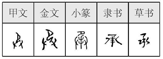 ❹阿谀奉承|满口应承|曲意奉承|一脉相承|一系相承 承承,甲骨文作 ,金文作   ,小篆作 。 从卩从廾。“卩”爲屈身人形,“廾”爲雙手托起之象。“承”字从卩从廾,表示雙手捧人,會奉承之意。古無輕唇音,“奉” 即今之 “捧”。“捧”有敬義,故捧、奉、奉承、蒙受、承受、擔負,義皆相因。卜辭用法不明。銘文或用接受義,或用作人名。又或用同“丞”,職官名。 楚簡帛文作 ,是知爲便書寫必斷筆,斷筆則必解散篆體,故啓功説文字爲體,書寫爲用。而體、用之間必相挾而變,故“體” 大致皆因 “用” 而生。 承chéng(8画)