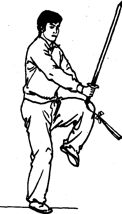 剑法之一。是右手持剑于胸,左手剑指放于剑柄一侧的动作。在传统剑法中,左手成掌附于剑柄,并不实抱。现代剑术套路中抱剑出现的次数较少。动作过程:抱剑有剑尖向右成立剑的横抱剑(图2—4—113—❶)、剑尖向前成平剑的平抱剑(图2—4—113—❷)、剑尖向上的立抱剑(图2—4—113—❸)等形式。动作要领:剑与胸同高,左手成剑指平抱剑,掌心向上;立抱剑和横抱剑手心向里。攻防含义:抱剑是防中待攻的剑法。是双手用剑的准备动作。