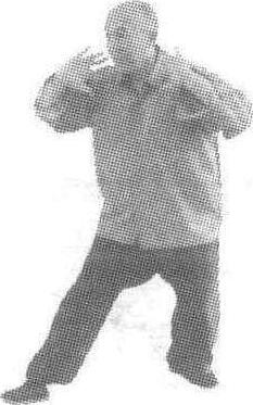 陈式太极拳式之一。双腿呈右弓步,沉肘蓄掌,之后双手向前按出。如图。有诀云: “两手托胸似推山,恨不一下即推翻,此身有力须合并,更得留心脊背间。”