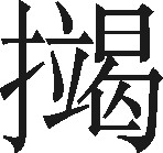 也作“担”。担;挑。例:用扁担~粪土。❍ 把椽一头~墙上,~深一点,~牢。《广韵》:“,担物也。本亦作揭。”