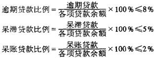 监管当局考核农村信用合作社资产负债比例管理的九个指标之一。分为逾期贷款比例、呆滞贷款比例、呆账贷款比例三个子项目,其含义分别为:逾期贷款与各项贷款余额之比不得超过8%,呆滞贷款与各项贷款余额之比不得超过5%,呆账贷款与各项贷款余额之比不得超过2%。公式分别表示为: