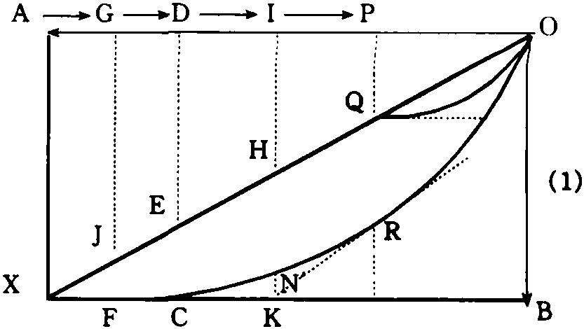 图1 图(1)和图(2)表示农业部门。图 (1)中,原点位于右上角,横轴OA从右向左度量农业劳动,纵轴OB从上至下度量农业总产出,ORCX曲线代表农业部门总物质生产率或总产出曲线。ORC部分表示随农业劳动力增加,边际生产率递减; 水平的XC部分表示劳动边际产品为O。从图中可以看出,AD数量的农业劳动力是多余劳动力。假设一个国家一个时期的总人口为OA,初期没有工业部门,全部人口都在农业就业,并假设全部农产品都由农业人口消费。这样,农业劳动力的平均收入等于AX/OA,即OX线的斜率。在存在农业剩余劳动的情况下,农业劳动力的平均收入只够维持生存水平,叫做“不变制度工资”。图中切点R上,农业劳动边际生产率等于不变制度工资,在这一点以后的农业劳动力AP是伪装的失业者,其中AD部分是边际生产率等于O的剩余劳动力,而DP部分是边际生产率大于零且小于制度工资的。拉尼斯与费景汉认为,剩余劳动决定于生产函数,而伪装失业决定于工资水平 (Ranis -Fei,1961)。