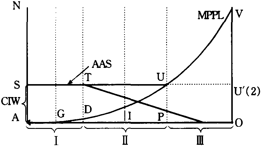 图2 图 (2) 原点在右下方,横轴OA从右至左度量农业劳动,纵轴AN从下至上度量农业平均产品和边际产品,VUDA曲线表示农业劳动的边际生产率,SU为不变制度工资线,它与横轴的距离等于农业平均产品。 拉尼斯和费景汉用图 (2) 表示农业劳动向工业部门转移的过程。这种二元经济结构的演变分为三个阶段。第一阶段是转移农业中的剩余劳动力,即AD部分,农业边际生产率为零或接近于零,农业工资为不变制度工资。第二阶段转移DP部分,即隐蔽的失业部分。这时农业部门随劳动力转移而使边际生产率上升,直到P点,农业劳动边际生产率上升到等于制度工资 (VUDA这条农业劳动边际生产率曲线与SU′线相交于U点)。这一部分劳动力转移,农业部门工资仍保持在制度工资水平,仍不提高。而在P点之后,劳动力转移进入第三阶段,农业劳动力转入工业,劳动边际生产率的上升将使农业工资超过不变制度工资水平。这意味着进入第三阶段后,农业部门完全商业化了,工资水平已不再由制度决定,而由市场力量决定。这样,图 (2) 中的SUV曲线就成了农业劳动对工业部门的供给价格曲线,它表明每一工资水平从农业部门可以释放的劳动数量。 拉尼斯—费模型中还对总农业剩余和平均农业剩余进行了分析。随农业劳动力转移出来,农业总产品因农业人口的减少而出现剩余,就是总农业剩余。总农业剩余除以转移的农业人口总数就是平均农业剩余。平均农业剩余在转移过程中会发生变化,从而影响工业部门的工资水平,进而影响工业部门的扩张速度和劳动力转移速度。图 (2) 中曲线STO是平均农业剩余曲线。在劳动力转移的第一阶段,农业劳动力减少会影响农业总产品,因此平均农业剩余等于制度工资,表现为平均农业剩余曲线同不变制度工资曲线的ST段重合。到第二阶段,由于农业劳动边际生产率大于零,劳动力转出农业将使平均农业剩余减少,平均农业剩余曲线STO从T点起开始位于不变工资曲线SU之下。D点叫短缺点。到劳动转移的第三阶段,农民工资由劳动边际生产率决定,已开始高于不变制度工资,平均农业剩余将下降的更快。P点被称为商业化点,是第三阶段的起点。在拉尼斯和费景汉看来,从劳动力转移的第二阶段起农业总产出将会减少,引起粮价和工业工资上涨,因此会影响工业扩张。这一份析的意义在于指出,在经济发展第二阶段起就必须在工业扩张同时提高农业生产率,促进农业发展,否则会在隐蔽失业消除之前就限制工业扩张。拉尼斯—费模型关于农业劳动者的工资水平不会因农业生产率变化而变化的假定,日本经济学家大岛 (H. T. Oshima) 批评说是最难于接受的 (1963)。 ☚ 哈罗德—多马增长模型 托达罗模型 ☛ |