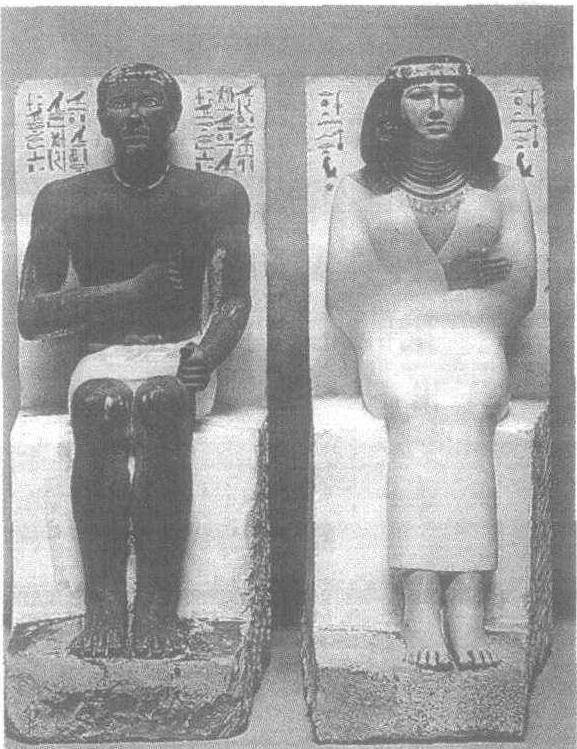 拉霍特普与诺夫勒特像 拉霍特普和诺夫勒特雕像集中地反映了埃及人物雕刻的特点。两像皆正面端坐,王子赤裸着健壮的上身,右手握拳置于胸前,左手则握拳放于膝上,两腿并拢,自然垂下,结实的脸庞镶着两只炯炯有神的眼睛。王后右手自然置于前胸,薄薄的衣裙显露出她那丰满的体态。她那端庄安详的神态与青年王子刚毅、智慧的表情恰形成了鲜明的对照。从这组雕刻我们看到了古埃及雕刻家在庄严的法则下所创造的富有生气的、个性化的人物形象,看到了他们在对人体解剖的谙熟把握和写实技巧的运用以及对人物精神塑造上所达到的高度成就。 ☚ 狮身人面像(斯芬克斯) 卡珀尔木雕像 ☛ |