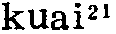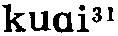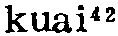 拐2guai3(形)❶错;差:你听爹妈的话不得~。(十人选328)丨一个尖子,不偏不~,刚好踢在眉心。(梨64) ❷(~了)坏,糟糕:不溜不输,一溜倒~了,老赵晓得,一定认的了我有毛病,所以才畏罪潜逃。(大一123) 拐kuɛi53❶方向改变及方向改变的东西: 路~弯,~尺。 ❷对人凶狠: 这个人~得很。 ❸腿跛: ~子。 ❹拄杖: ~杖。 ❺骗: ~带人口。本字为乖。张舜徽云: “今语称人之性行恶劣者为乖,音转为拐,即乖之引申义也。凡云拐角、拐杖皆当从乖为本字,拐骗则当以诖为本字。” 拐〔guai〕jid weax: 从那边~过来。zhaos ghaot yib jidweax guat lol. 拐棍 〔gua gun〕ghob blad nhas. 拐角〔guaijiao〕ghobniox:在房子~处。nibghobnioxbloud. 拐骗〔guaipian〕jidghous:小孩被人~走了。debdebzhaosnexjidghoussheubmongljul. 拐弯〔guaiwan〕jidngguand:他~到那边去了。wudjidngguandgheatghaotyibmongljul. 拐弯抹角〔guaiwanmojiao〕radbleidradblud:说话~。puddutradbleidradblud. 拐杖〔guaizhang〕ghobbladnhas. 拐肘〔guaizhou〕bidbaodxid. 拐子〔guai·zi〕ghobnexliax. 拐ㄍㄨㄞˇguǎi三3225①动转动。中原官话。河南〖 〗。李准《小康人家》:「春妞这时有劲地~着辘轳,显出浑身是劲。」②动碰撞;顶。⑴北京官话。北京〖 〗。汽车把那自行车~躺下了。⑵胶辽官话。山东莱阳、牟平。⑶西南官话。四川成都〖 〗。小张端起满满一杯酒,谁知被小李一~,浪出来不少。李劼人《大波》第三部第三章:「吴凤梧用手肘把他一~道:『这里是又三先生的码头。』」③动走路时缓慢地扭动。⑴北京官话。北京〖 〗。一走一~‖那个小脚儿女人哪儿就~到啦!⑵西南官话。云南昭通。姜亮夫《昭通方言疏证・释词》:「昭人谓小脚行路曰跬,音变如~。」④动打横;打岔。⑴兰银官话。甘肃兰州〖 〗。⑵江淮官话。江苏涟水〖 〗。⑤动刮削。江淮官话。湖北浠水〖 〗。把饼子~一块下来。⑥动绞,纺,摇,提。⑴冀鲁官话。河北〖 〗。一个人在院子里~水浇园‖老太太在门口~线。⑵中原官话。陕西商县张家塬〖 〗。她正在~线哩。⑦动抱。粤语。广东阳江〖 〗。细路小孩~在怀里睏着了。⑧动说。中原官话。陕西。1984年第8期《新华文摘》:「他妈脸一抬:『胡~些啥,媳妇不寻了,日子不过?』」⑨动比赛(多用来跟小孩说话)。晋语。河南安阳:冰冰快喝饭,咱俩~吧?瞧谁拐过谁!⑩动蹬。西南官话。四川自贡〖 〗。马~了。⑪动挎。东北官话。东北〖 〗。《高玉宝》:「胳膊肘~着一个针线筐子。」1981年第6期《新华文摘》:「新婚第二天,男人去打短工,她又~起要饭篓。」⑫动搅和。中原官话。江苏徐州〖 〗。菜叫馊豆腐~坏了。⑬形错;差错。西南官话。四川成都〖 〗。多学多问少出~‖药吃~了性命攸关。李劼人《大波》第二部第四章:「千万不要因为我把话说~了,多我的心哟!」贵州清镇〖 〗、沿河〖 〗。他弄都弄~了。⑭形坏;糟糕。⑴中原官话。甘肃天水〖 〗。⑵江淮官话。湖北红安〖 〗。⑶西南官话。湖北武汉〖 〗、天门〖 〗、随州。四川成都〖 〗。~了!钥匙锁到屋头去了。马识途《夜谭十记・亲仇记》:「他一听张婆在喊救命,知道事情~了。」贵州沿河〖 〗。~了,我的皮包落丢了。贵州清镇〖 〗。云南新平〖 〗。这事情着老赵整~了。云南玉溪〖 〗、腾冲〖 〗。⑷湘语。湖南长沙〖 〗、双峰〖 〗。⑸赣语。湖南耒阳〖 〗。湖北蒲圻〖 〗。要分出好人~人。⑮形阴险;歹毒。⑴中原官话。陕西商县张家塬〖 〗。这人心里~的很!⑵西南官话。云南玉溪〖 〗。那个人最~了,你要小心点!云南新平〖 〗。⑯形性情乖僻,难以相处。⑴冀鲁官话。山东聊城〖 〗。那人~着哩‖你怎么这么~啊!⑵中原官话。江苏徐州〖 〗。她老婆婆才~‖又~又坏。⑶江淮官话。江苏淮阴〖 〗。◈ 端木蕻良《钟》:「字没有孩子认得多,脾气倒比孩子~得多。」⑰形蛮横,不讲理。赣语。江西宜春〖 〗。里只后生蛮~。⑱形怪;味不正。中原官话。江苏徐州〖 〗。这菜有一点儿~味。⑲形(处世)圆滑。赣语。江西新余〖 〗。该只人好~‖~绝里。⑳形松懈。吴语。上海崇明〖 〗。㉑形调皮。江淮官话。湖北红安〖 〗。㉒名岔子;问题。西南官话。四川成都〖 〗。这个人做工作不细心,天天出~。克非《春潮急》三四:「徐二鸡公吓得打抖,说:『糟!糟!要出大~。』」㉓名踝骨。北京官话。北京〖 〗。㉔名骨与骨相接处。吴语。上海崇明〖 〗。㉕名青蛙。赣语。江西。黄砾明《追寻》:「用山民们的话来说,是『蛇有蛇路,~有~路,癞蛤蟆没有路也会蹦三步。』」㉖名肘,肘关节。西南官话。四川。《四川文艺》:「胳膊~撞过来。」㉗名数码「八」的代称(市侩隐语,通用于粮食牙行等场所)。吴语。安徽芜湖。民国本《芜湖县志》:「今市侩隐语通用于粮食牙行者,一由,二申又名中,三人,四工,五大,六王又名陵,七主又名柴,八井又名~,九羊,十仍为由。」㉘名指买卖牲口时为「五」(如五、五十、五百、五千…)的价格。晋语。山西忻州〖 〗。   拐❶〈隐〉清末以来湖北武汉纺织业指数目五。参“明、暗、聚、宽、拐、变、夜、间、梢”。 ❷〈隐〉清末以来四川东部畜牧市场经纪人指数目五。参“逗、耳、太、查、拐、捞、季、条、敲、梢”。 ❸〈隐〉清末以来四川成都畜牧市场经纪人指数目五。参“收、抬、找、查、劳、条、敲、稍、海”。 ❹〈隐〉旧时中原地区江湖诸行指数目千。 拐*柺❶ɡuǎi