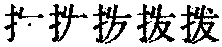 拨读音b·o(-),为o韵目,属e—o—uo韵部。北末切,入,末韵。 ❶拨动;用手指或棍棒等挑动如琴弦等物件。 ❷分给;拨款。 ❸量词,用于成批的或分组的。 上一条: 墢 下一条: 撥 拨 ☚ 生受 间璧 ☛ 拨〔bo〕 1.qib: ~灯。qibxanb. 2.jid saod: ~火.jidsaod deul. 3.box:~款。boxkuant. 拨撥ㄅㄛbō三3293①动给。吴语。上海〖 〗。~张报纸我‖我~伊一本书‖伊个看园个,每月~伊工钱,无啥别样否。《杂格咙咚集》:「亦呒啥,加两钿就加两钿末哉,决定~伊两千块!」独脚戏《七十二家房客》:「我大饼日日吃惯盖,倷勿~,搭我搬场!」上海嘉定。《嘉定县续志》:「俗谓以物与人曰~。」上海崇明〖 〗、上海南汇周浦。江苏苏州〖 〗。送本书~俚。《官场现形记》:「耐格姨太太一个月~俚几化洋钱用?」《海上花列传》第八回:「勿然末,耐去拿个凭据来~我。」江苏无锡。孙有莱记录《江苏歌谣・红老鸦》:「大人家弗~,小人家弗~,~勒洞庭山上头一家,珠簾板壁琉璃瓦。」江苏常州〖 〗。东西~他格连。浙江杭州〖 〗。~他。浙江绍兴。《全国优秀短篇曲艺获奖作品集》:「侬欢喜吃啥个药,侬讲,我开~侬。」浙江宁波。②介被;让;给。吴语。上海〖 〗。我~伊骂勒两声‖求㑚第封信拆开之,念~我听听看。《海上新繁华梦》第六回:「弗可以~屋里晓得。」上海南汇周浦。江苏苏州〖 〗。饭碗~俚打碎哉‖俚~狗咬仔一口‖~俚敲着一记。《苏州土白新约全书・马可传福音》第一章:「~圣灵感动咾有身孕。」《九尾龟》第十二回:「倪说~耐听仔,随便倽人,也要心浪惹气格。」江苏常州〖 〗。铅笔~他弄断落。江苏常熟。《常熟地方小掌故》:「张天师~鬼迷,有法无处使。」浙江杭州〖 〗。他~猫咬了一口。江苏昆山。浙江舟山〖 〗、绍兴:贼~狗咬——话勿出。③动扇。⑴湘语。湖南娄底〖 〗。~扇子。⑵客话。广东梅县〖 〗。台湾〖 〗。⑶粤语。广东广州〖 〗。~扇‖~火。⑷闽语。广东揭阳〖 〗。觅无扇,用本书来~找不到扇子,用本书来搧。④动拉;拽。吴语。浙江温州〖 〗。窗帘~拢‖山上的茅竹砍落还沃靠人~到山下个‖板车生重~不动。⑤动特指购买木材、竹等。吴语。浙江温州〖 〗。该批杉树~来是何乜价钱。⑥动抓。吴语。浙江温州〖 〗。昨夜昨天偷我踏脚车自行车个贼匄公安局~牢吧‖乡政府有何乜权逮人~起呢。⑦动抽出。闽语。福建厦门〖 〗。~工抽出工夫‖~时间抽出时间。⑧动分期拿出部分收入归还债务。吴语。浙江温州〖 〗。欠你个钞票,我单下阿拆不爻一次也归还不了,等我近来挣了钱以后~匄还你‖你一个月日只用~十个番钱,不用三年就会逮我个帐拆完。⑨动挪借。闽语。福建厦门〖 〗。且~五百钱暂且借五角钱‖米先~两斗。⑩动治理;整理。⑴冀鲁官话。河北雄县。1929年《雄县志》:「~,治也。《公羊传》云:~乱世反之正。」⑵吴语。浙江宁波。陈训正《甬谚名谓籀记》:「物乱整理之曰~。」⑪动打(电话)。粤语。香港。杨柳风《真凶是谁》:「如果阿玲有别的事情吧,她也应该~个电话回家。」⑫动借助工具把粉末、颗粒状的东西装进容器(以便运往他处)。吴语。浙江温州〖 〗。你逮把谷~起先‖吃饭~泥灰,干事干死人坯形容贪吃懒做。⑬动把蔬菜、水果、肉类在凉水里冰一冰,以除去某种内含物或气味。中原官话。河南商丘〖 〗。土豆切好后放在凉水里~~,炒着吃脆。⑭动转移钱物。吴语。浙江宁波。应钟《甬言稽诂・释货》:「今钱物移转曰~款,~货,调~。」⑮量根。晋语。山西襄垣〖 〗。一~头发。   拨撥bō❶拨动 △ 表~快点儿|~门。 ❷调(diào)拨;分出一部分 △ ~付。 ❸表示计量,相当于“批” △ 分两~干活儿。 【注意】跟“拔”不同。 拨撥❶挑动;推开:~门丨~钟丨~弄丨~冗(rong)丨挑~丨撩~点~丨~乱反正丨~云见日丨挑~离丨间(jian)。 ❷分给;支付:~付丨~粮丨~款丨~人丨调(diao)~丨划~。 ❸量词。用于成批的,分组的:一~人丨把人分成两~儿。 ○~剌(la)(象声词。形容鱼在水面跳跃的声音)。 拨bō❶ 用手脚或棍棒移动物体:拨弄|拨开|拨水。 ❷ 分给,拿出一部分:拨款|拨粮|拨工资。 ❸ 掉转:拨转船头。 ❹ 量词,表示人的分批分组:一拨人走来|又来一拨旅游者。 拨bō用手脚或棍棒等横向移动物体,有时用于抽象意义。 【词汇】拨付︱拨发︱拨款︱拨弄 【组词】拨通电话︱拨云见日︱拨经费 【例句】圆圆拨了妈妈单位的电话号码,电话通了。 ❍ 我脱下毛衣,抛在刺猬旁边,用靴尖轻轻地把这一团小东西拨进毛衣里,包好了带回家。 【近义】挑︱推︱移 拨bō治理。《九叹·惜贤》:“拨谄谀而匡邪兮,切淟涊之流俗。”王逸注:“拨,治也。匡,正也。……言己如得进用,则治谗谀之人,正其邪伪。”汤炳正今注:“拨,治理。” 拨bo拨打 拨付 拨给(gei) 拨工 拨号 拨款 拨拉 拨刺 拨粮拨弄 拨冗 拨正 拨子 拨奏 点拨 调(diao)拨 划拨 撩拨 挑(tiao)拨 增拨 支拨 拨改贷 拨号盘 拨火棍 拨浪鼓 拨草寻蛇拨乱反正 拨万论千 拨雨撩云 拨云见日 拨云见天 拨开云雾见青天 拨bo❶手脚或棍棒抵住某个东西,横着用力,使东西移动:用手把门~开|~一~算盘珠子|把船~过来。 ❷分出一部分发给;调拨:~一批救济粮给灾区|~两个人去加强救灾组织工作|我们的全部经费都是由国家~的|他们那儿办公用房不够,~两间屋给他们。 ❸<量>用于指一组人,一群人:刚才走了一~,现在又来了一~|他们那~人,个个