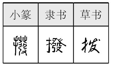 bō撥,形声,从手,發声,本义为治理,引申为除去、用手脚或棍棒等横着用力来推动或移动东西、弹拨(弦乐器)、分配等。《简化字表》类推简作“拨”。 |