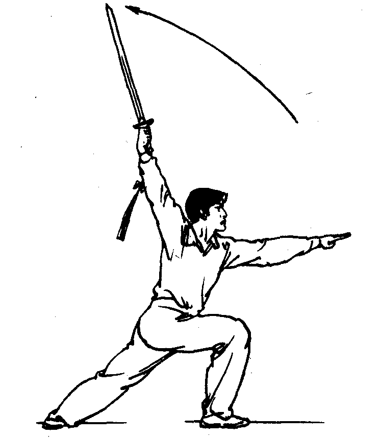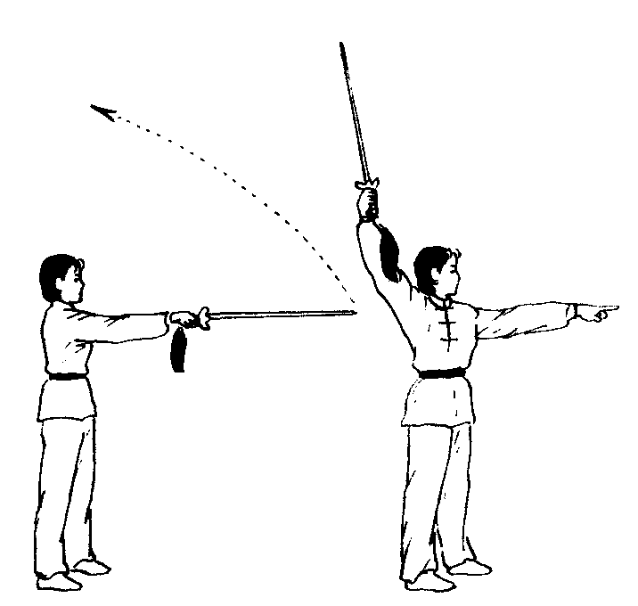 ❷挺腕,直臂上挑,臂与剑成一条直线。