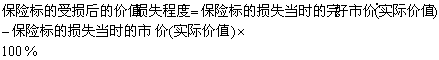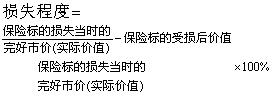 损失程度保险标的在有效期限内由于保险事故造成损失的程度。它是确定保险赔偿额的依据。其公式如下: