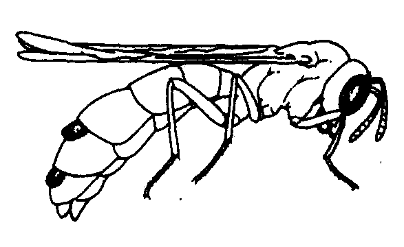 捻翅目Stylops medionitans (a) 雄成虫(仿E.O.Essig) (b)雌成虫(仿E.O. Essig)(c) 寄主(仿W.Ulrich)