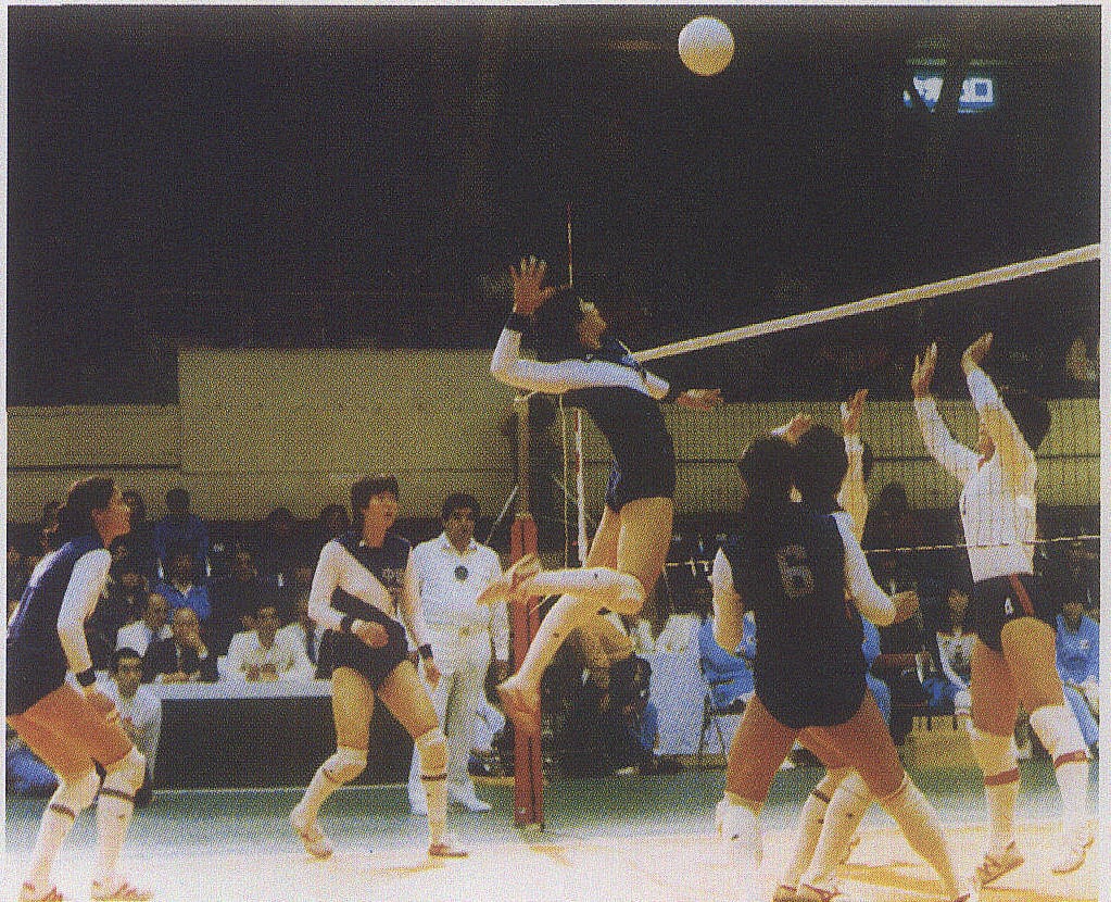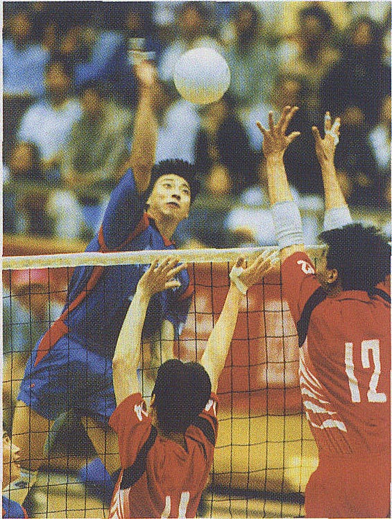 1985年世界杯女排赛中郑美珠在扣球