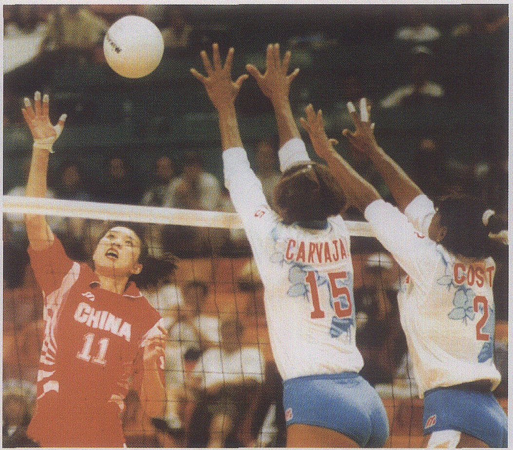 中国队与韩国队激战 | 时间(年) | 赛事 | 1981 1982 1984 1985 1986 | 第3届世界杯女子排球赛 第9届世界女子排球锦标赛 第23届奥运会 第4届世界杯女子排球赛 第10届世界女子排球锦标赛 |