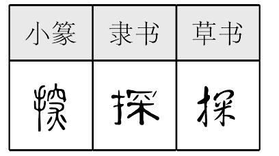 tàn形声,从手,罙(shēn)声,本义为摸取,把手伸进去取东西,引申为试图发现(隐藏的事物或情况)、侦察、从事侦察工作的人、看望、伸出(头或上身)等。 |