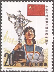 | 释义 | 中国女排获第三届世界杯冠军 发行日期:1981年12月21日 齿孔度数: 印刷版别:影写版 票幅:30×40 全张枚数:50(10×5) 设计者:李印清 印刷:北京邮票厂