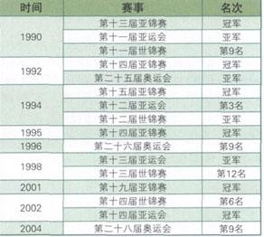 | 释义 | 中国女篮 1982年11月19日至12月4日,第九届亚运会篮球比赛在印度新德里举行。 中国女篮以75∶67的比分战胜韩国队,荣获亚洲冠军。 1983年7月24日至8月6日,第九届世界女子篮球锦标赛在巴西圣保罗举行。 中国女篮首次参赛,获得第3名。这是中国篮球运动向世界先进水平挺进中迈出的重要一步,也是中国篮球史上女子篮球在世界大赛中取得的最好成绩。 在此赛中,队员宋晓波共得134分,被选为世界女篮A组最佳阵容之一。 1984年5月5日至16日,第二十三届奥运会女子篮球预选赛在古巴哈瓦那举行。 中国女篮名列第1名,获得参加奥运会女篮比赛的资格。7月29日,第二十三届奥运会篮球比赛在美国的洛杉矶举行,中国女篮首次参加奥运会的比赛,夺得铜牌。 中国女篮历届大赛成绩(1990~2004年)