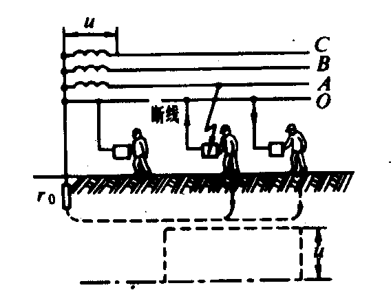 当Rc=R0时,零线断线处后面的设备外壳上的对地电压,降低一半,虽减轻了故障的程度,但此电压对人体仍然是不安全,因此应避免发生零线断线。 在架空线路的终端及沿线每1千米处,零线应重复接地。电缆和架空线在引入车间或大型建筑物处,零线应重复接地。