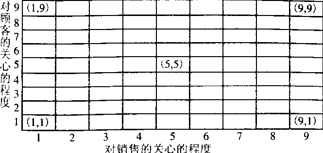 从推销人员角度看待推销心理的一种理论。由管理方格理论演变而来。以横坐标表示推销人员对销售情况的关心程度,纵坐标表示推销人员对顾客的关心程度。横、纵坐标均有从1到9的九个等级,构成9×9方格图,每一方格代表一种特定的推销类型。其中最具代表性的有5种类型:(1)1.1型:这类推销人员既不关心销售情况,也不关心顾客,可称之为“事不关己型”,其推销态度最差。(2) 1.9型:这类销售人员对销售情况极不关心,但十分关心顾客,可称之为“顾客导向型”。(3)5.5型:这类推销人员对销售情况和顾客都有一定程度的关心,但他们只关心顾客的购买心理,而不考虑顾客需要,可称之为“推销技术导向型”。(4)9.1型:这类推销人员十分关注销售情况,但不关心顾客,可称之为“强硬推销导向型”。(5)9.9型,这类推销人员对销售情况和顾客都十分关心,可称之为“解决问题导向型”,其推销态度最佳。