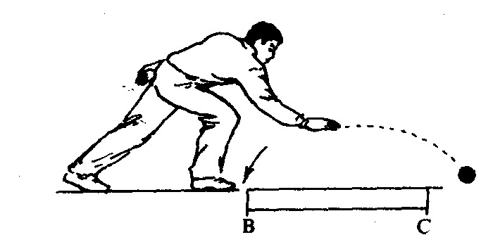 | 释义 | 掷滚击球 掷滚击球地掷球掷球方法的一种。是借助或不借助地面去撞击事先向裁判员声明的场上大球和小球。规则要求掷球时必须在B线内声明所滚击的目标,待裁判员允许后再掷球。在球出手前支撑脚不能超过B线,掷出球的第一落点必须超过近端C线,首先击中所声明的目标,方为有效,掷球后顺势跑动最远不能超过D线。掷滚击球技术动作应注意力集中,事先选好掷球路线,手臂挥摆方向要正对目标,助跑引臂时自然放松、动作协调、力度适中。球出手瞬间保持身体平衡,球出手后身体重心随势前移。(图2—3—60)