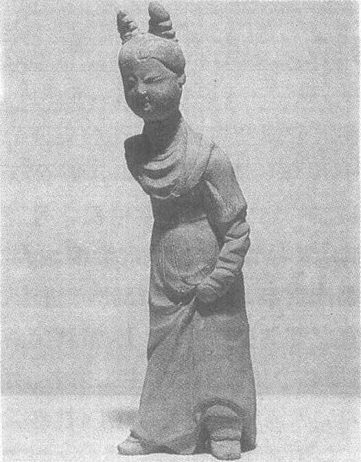 | 释义 | 提裙女陶俑 提裙女陶俑唐。高29.2厘米。湖北省武昌市钵盂山出土。湖北省博物馆藏。此俑为一少女形象,梳双丫髻,窄袖衣外罩半臂,裙长及脚面。其面庞丰满圆润,五官玲珑,面带童心未泯的灿烂笑容。身材匀称,腰微弯,左手提裙(右手残失),两腿分开作迈步前行状。塑造手法简练,艺术表现力强,是件十分可爱的陶塑作品。