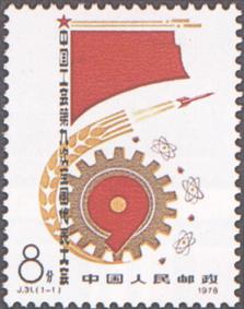 | 释义 | 中国工会第九次全国代表大会 发行日期:1978年10月11日 齿孔度数: 印刷版别:影写版 票幅:30×40 全张枚数:50(10×5) 设计者:卢天骄 印刷:北京邮票厂