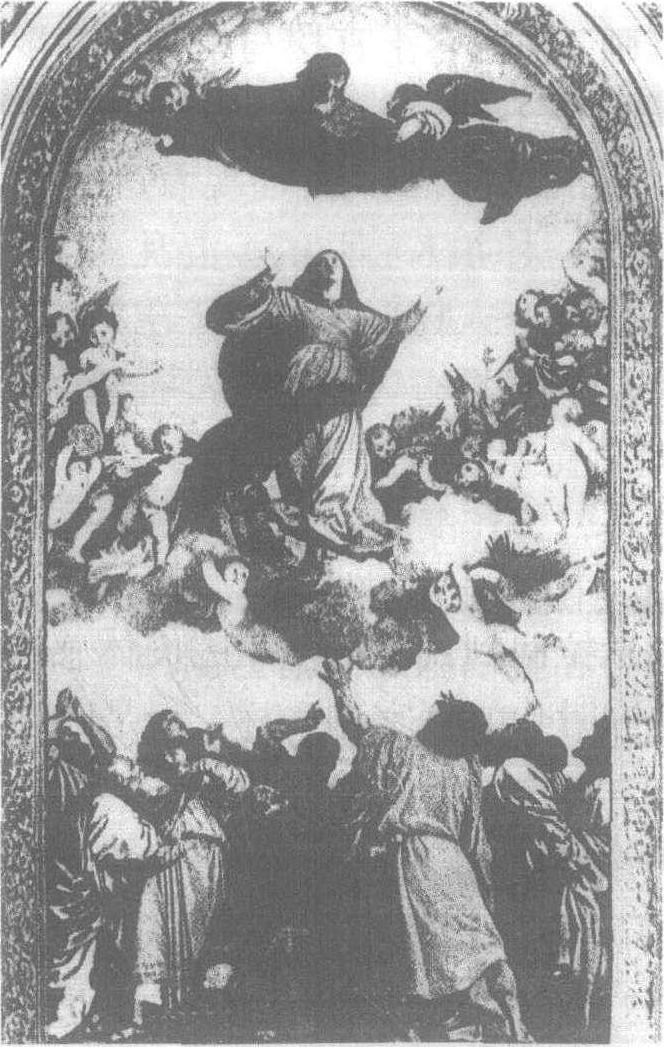 | 释义 | 提香《圣母升天》 提香《圣母升天》在威尼斯圣马可广场西北,有两座著名的教堂,其中一座就是弗拉里教堂。提香于1518年所作的 《圣母升天》图,便挂在这教堂的神坛后面。我们走进教堂,从老远的地方就能看到那激动人心的活灵活现的场面。我们几乎无法区别它哪些是主题的戏剧,哪些是光与影的戏剧。